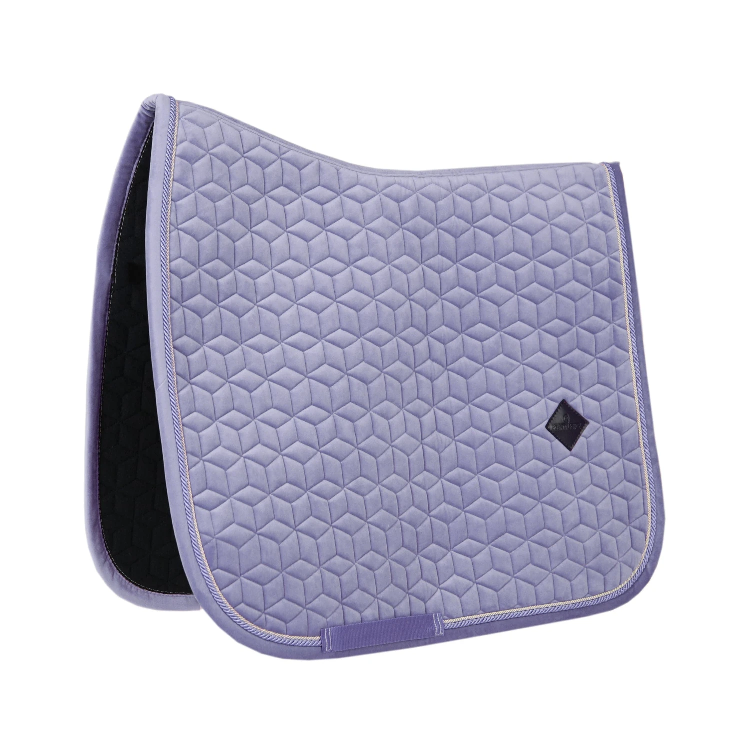 The Saddle Pad Velvet is shaped for dressage and provides excellent cushioning between the horse’s back and the saddle while protecting against friction. It is super stylish and classy, with a double twisted piping. This pad has no annoying straps to attach to the saddle, only a nylon strap for the girth. The subtle artificial leather logo is placed in a central, slightly higher place which always leaves room for embroidery of your own logo if desired. Machine washable at 30°, no dryer.