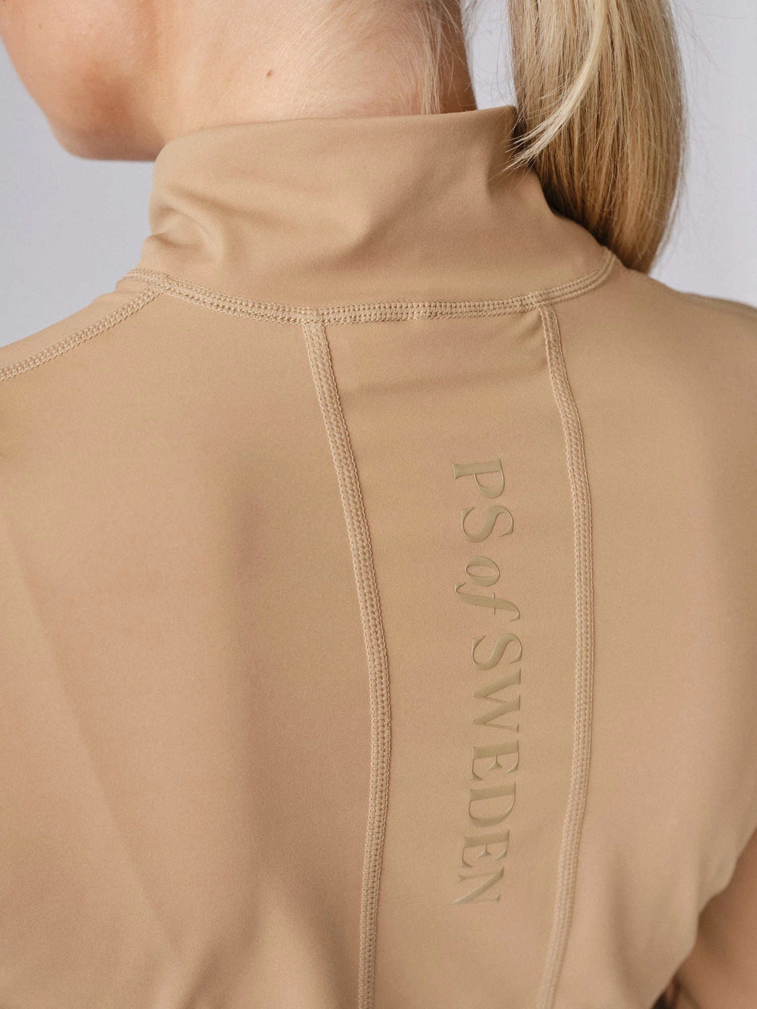 Half-zip base layer made in technical and luxurious recycled polyamide blend. Details like stand-up collar, shaping seams and a text logo print panel at back, give the base layer its stylish and sporty look.