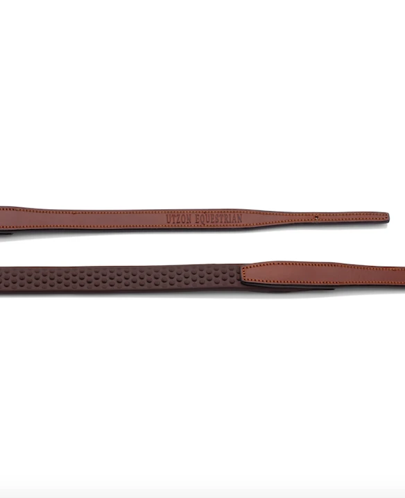 These Italian leather reins feature brass fittings and flexible pimpled rubber grip.